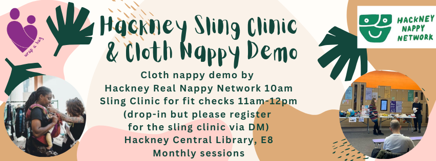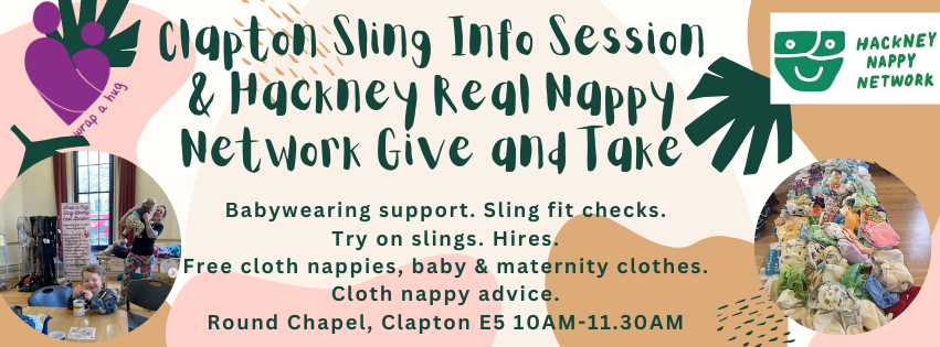 We have joined forces with the Hackney Real Nappies Network to offer you the ultimate cloth nappies and sling session!