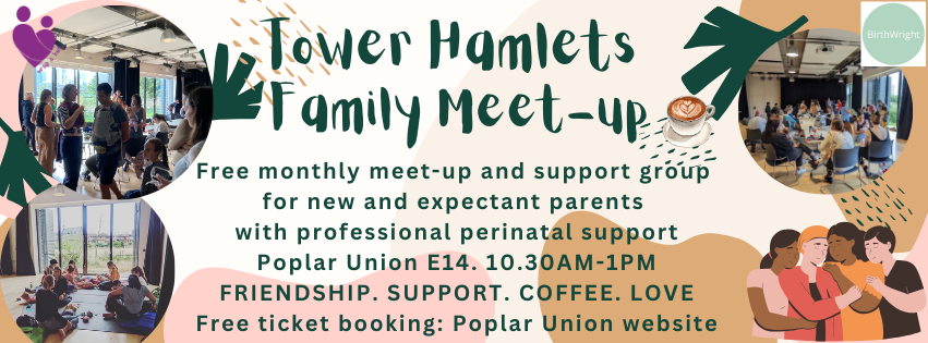 Every first Thursday of the month (except August) we meet at Poplar Union 10.30am-1pm for a morning of chats, professional support from various perinatal and early years professionals and providers and great coffee! This is a support group and meet-up for new expectant parents. Bumps, babies and toddlers welcome (though this is not a playgroup). I will be there with my slings to offer free advice, demos, troubleshooting and you can try a couple of slings on and hire on the day. Free ticket booking is encouraged. Click here to book. All welcome, no need to live in Tower Hamlets. Welcome to your village! More info here